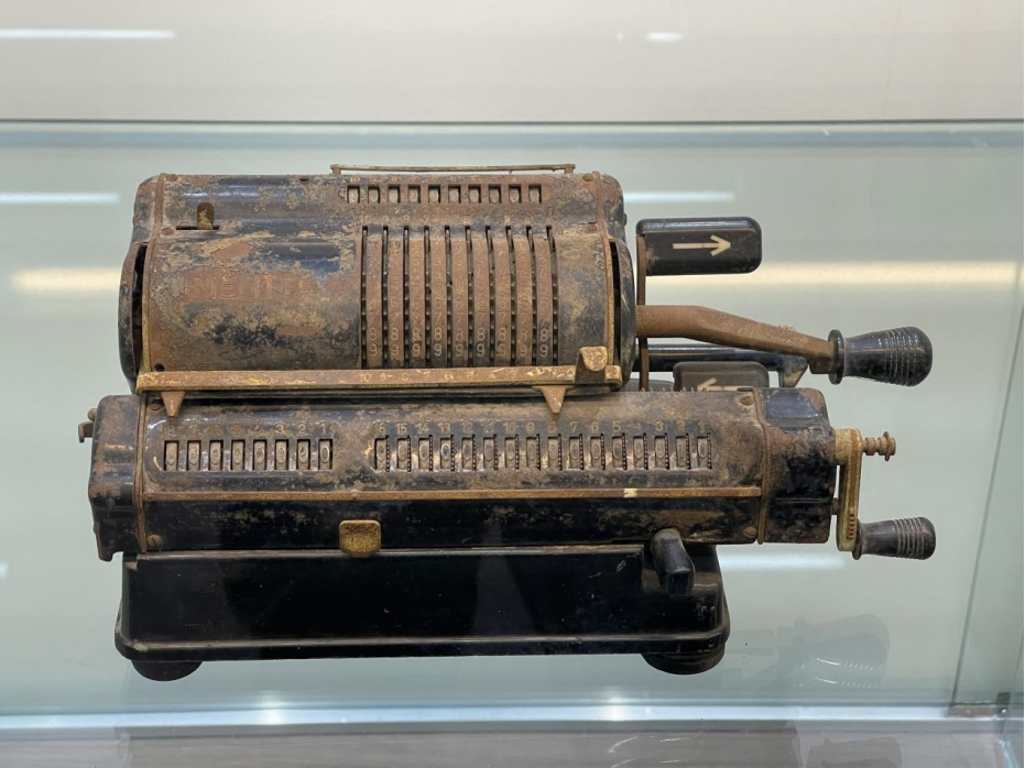 陈列在龙门水文站三层展厅的传统手摇计算尺(记者江晓晨 摄)