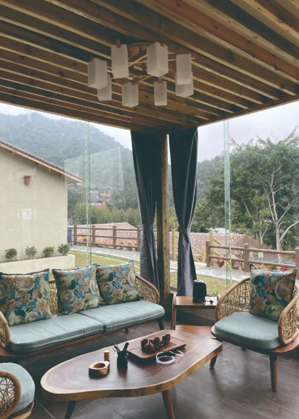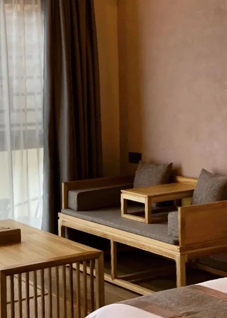 民宿格调淡雅,以实木装饰为主,从建筑外观到内部陈设,每一处细节都融入禅意文化,与六祖禅宗文化相互呼应,营造出静谧祥和的氛围。