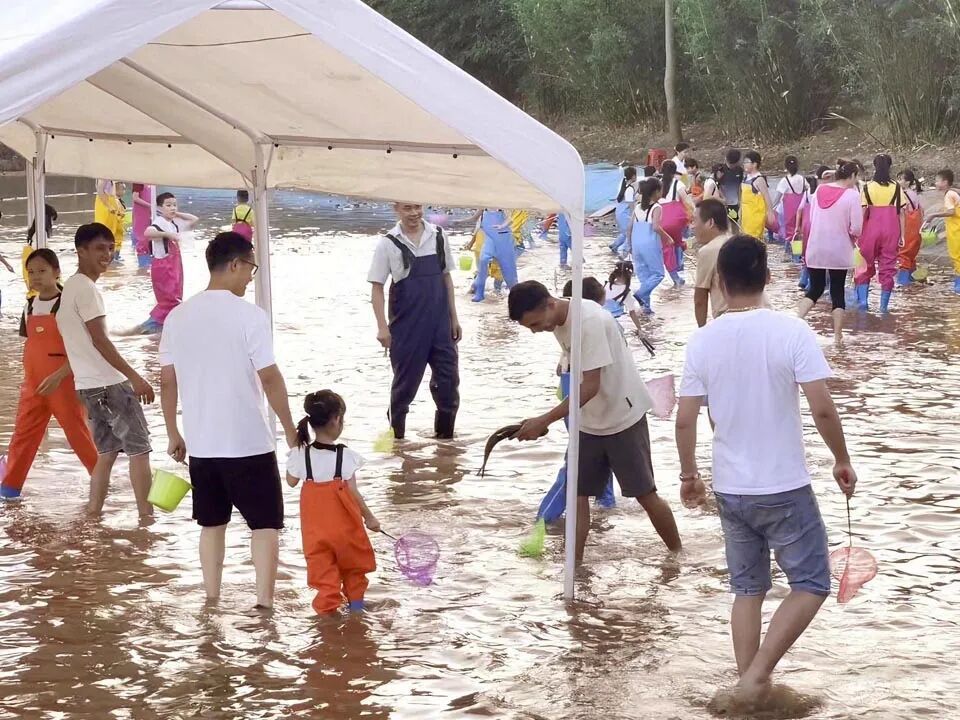目前一期已建成稻田小火车、稻田螃蟹乐园、稻田咖啡屋、窑鸡体验等多元业态,作为千年绥江碧道画廊的重要节点,农场通过“串珠成链”的布局,将农业资源转化为旅游资本,让游客在沉浸式体验田园风光的同时,感受四会农耕文化的深厚底蕴。
