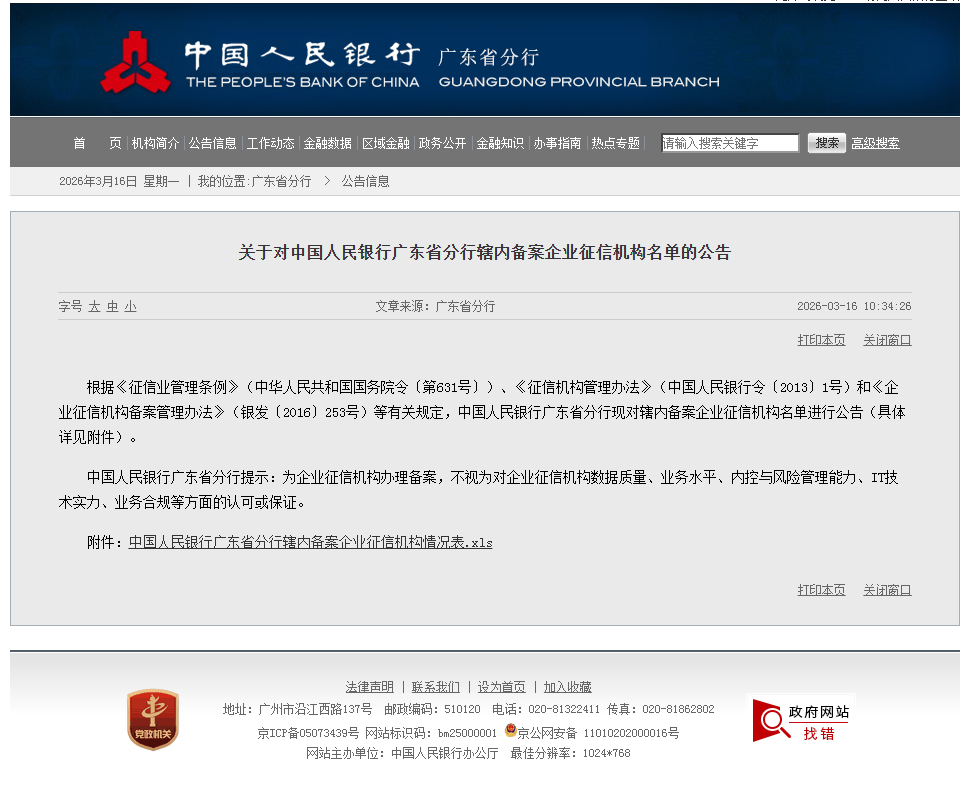 3月16日,广州广金数科有限公司(以下简称“广金数科”)正式获得中国人民银行广东省分行企业征信机构备案,备案自当日起生效,标志着这家国有控股企业正式具备合法开展企业征信业务的资质,也是自2015年之后广东(深圳除外)再次迎来企业征信领域的新增力量。