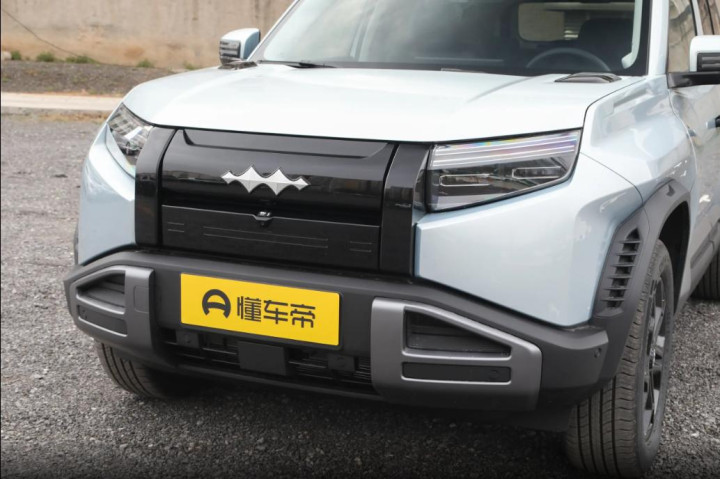 在外观设计上,咱们先看方程豹钛3闪充版的外观,我第一眼看到实车的感觉就是:硬朗、机甲、很有未来感。前脸是家族标志性的星战铠甲设计,封闭式熏黑中网,配上H型日行灯,整个车头又宽又精神,辨识度特别高,不是那种烂大街的家用SUV样子。